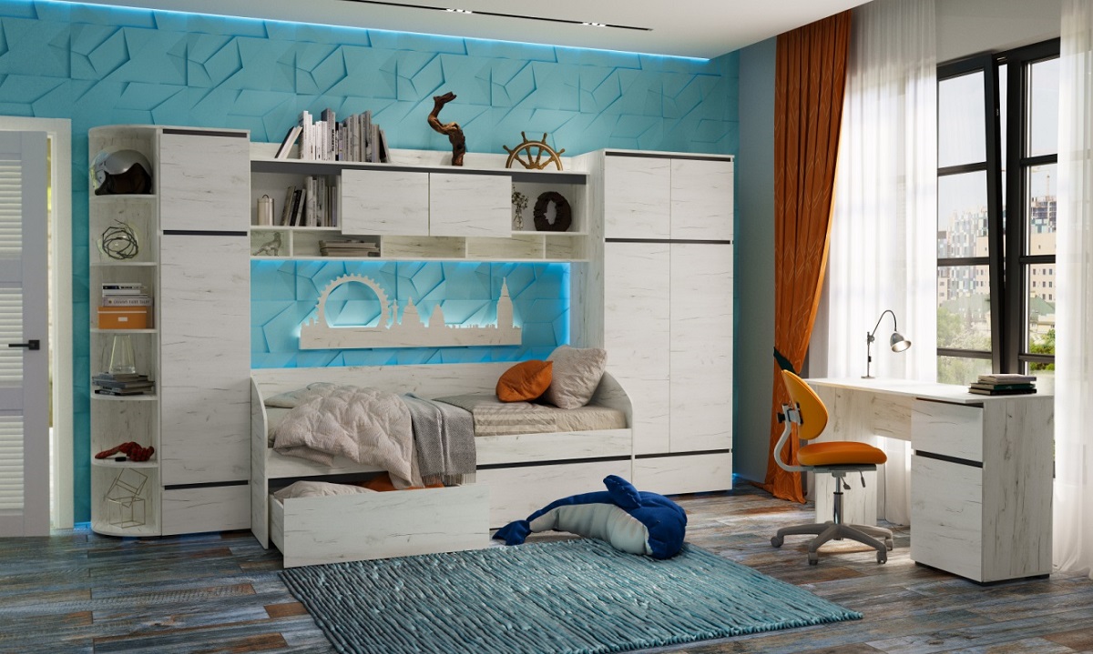 Модульная детская Гретта (Дуб крафт белый/Антрацит)