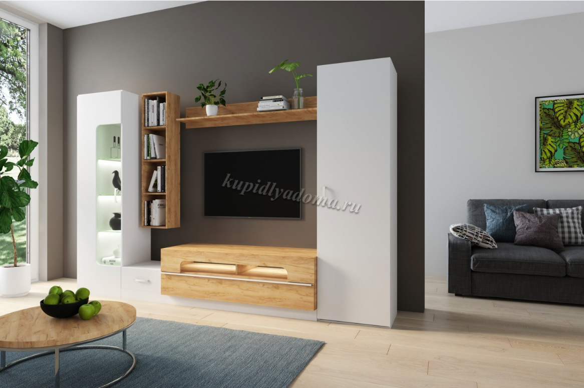 • Гостиная Моди К-2 (Дуб крафт золотой/Белое дерево)
