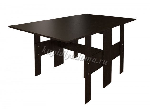 Буквально в считанные секунды и без особых усилий модель раскладывается в компактный кухонный или большой обеденный стол, а после использования так же легко трансформируется в узкую тумбу, которую можно прислонить к стене или задвинуть в угол, тем самым освободив пространство помещения.