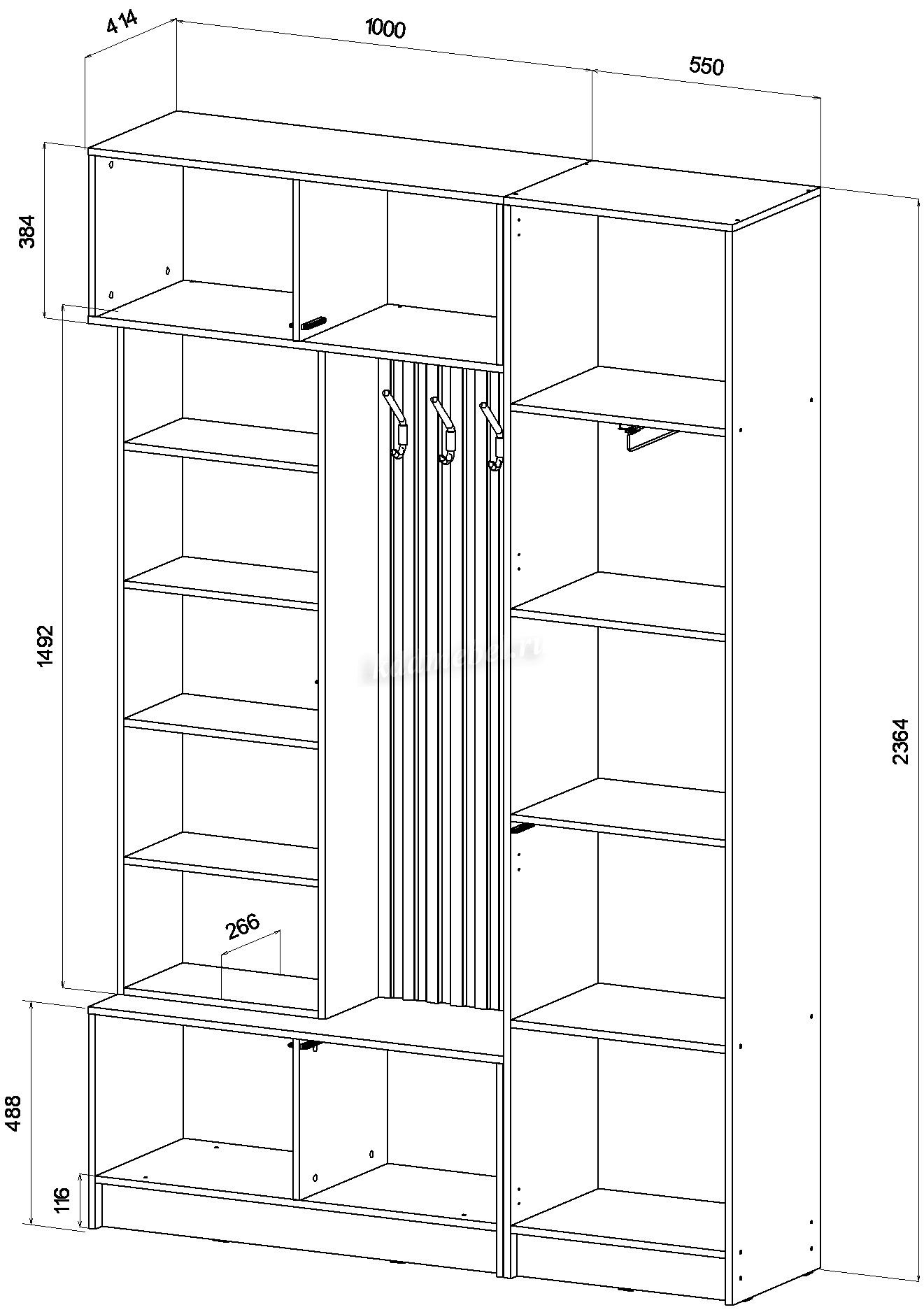Наполнение: полки + штанга выдвижная