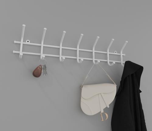 Вешалка настенная "Норма 7" подойдет для размещения в прихожей и офисных помещениях. В конструкцию входят 7 крючков с металлическими колпачками и петельками для крепления. Металлическая вешалка функциональна, надежна и проста в уходе. Данное изделие полностью безопасно в использовании.