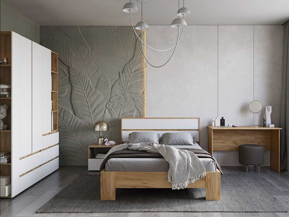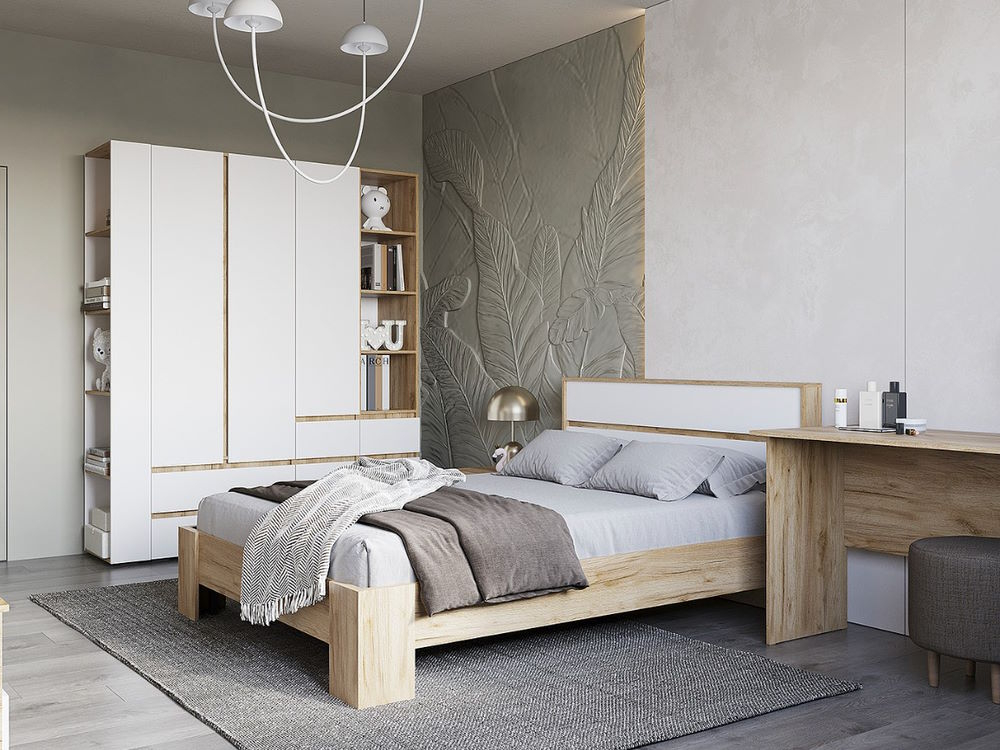 Сквозная коллекция Хелен, выполненная в сочетании декора ЛДСП "Белый шагрень" с теплым древесным декором ЛДСП "Крафт золотой" придает пространству чувство единения с природой.