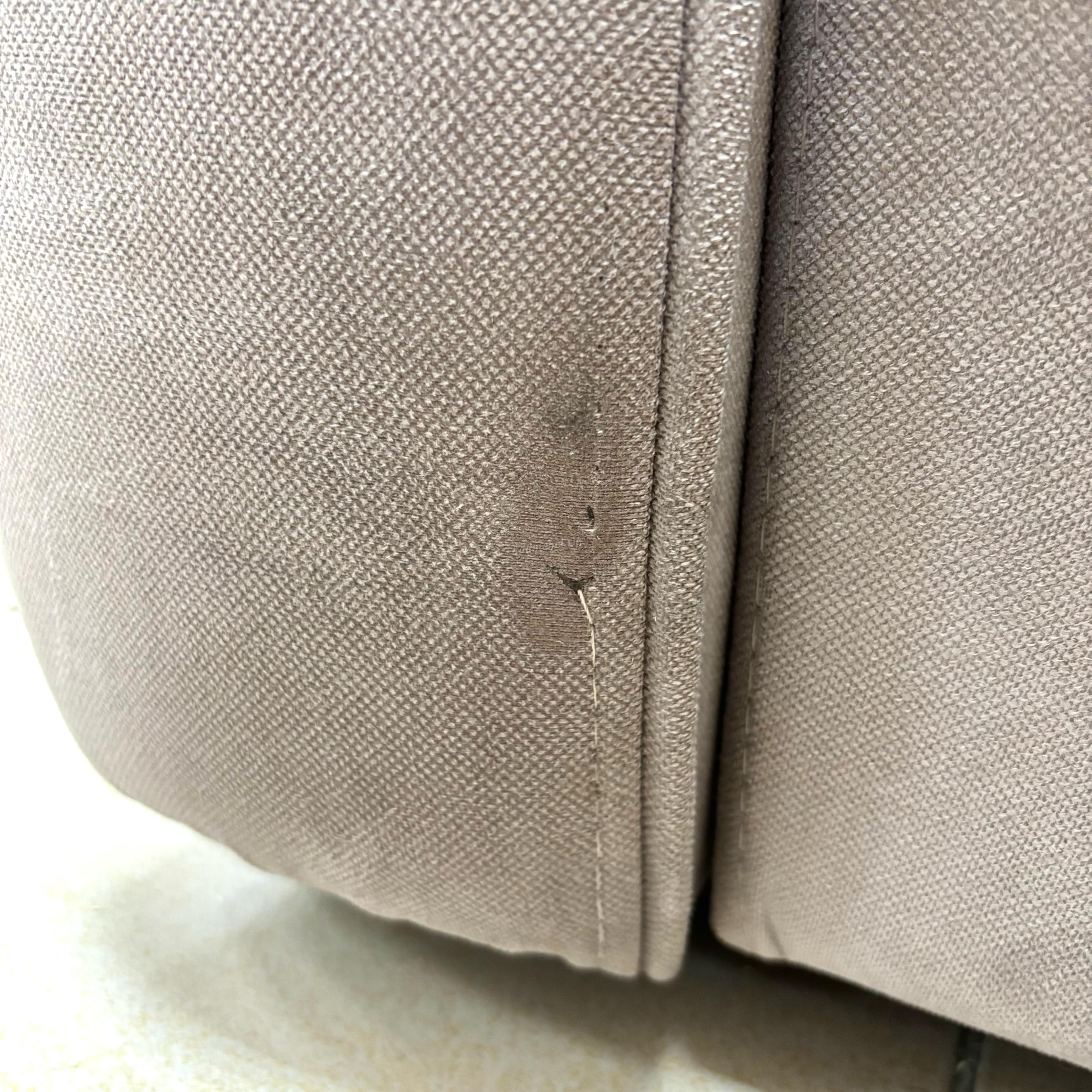 На спинке дивана есть небольшие затяжки ткани, на подлокотнике частично по шву нет ниток.