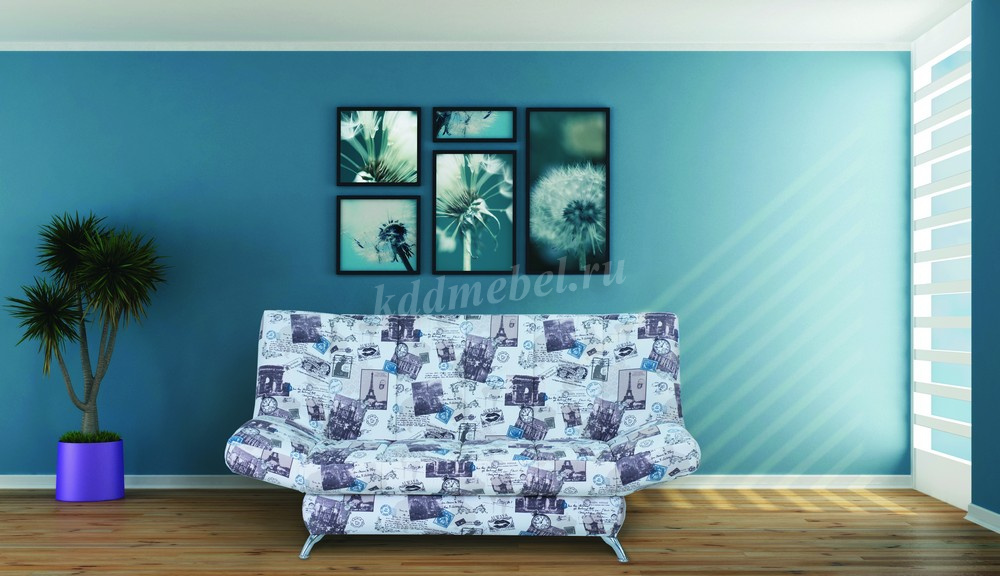 Диван снабжен большим бельевым ящиком и съемным чехлом, защищающим обивку от загрязнений и повреждений. Обивка может быть сделана из ткани или искусственной кожи, что придает особую респектабельность. Возможен комбинированный вариант: ткань и кожзам. Каркас: металлический профиль, наполнитель: ортопедическое основание из березовых лат, высокоэластичный ППУ, синтепон, короб для белья: ДСП, ДВП.