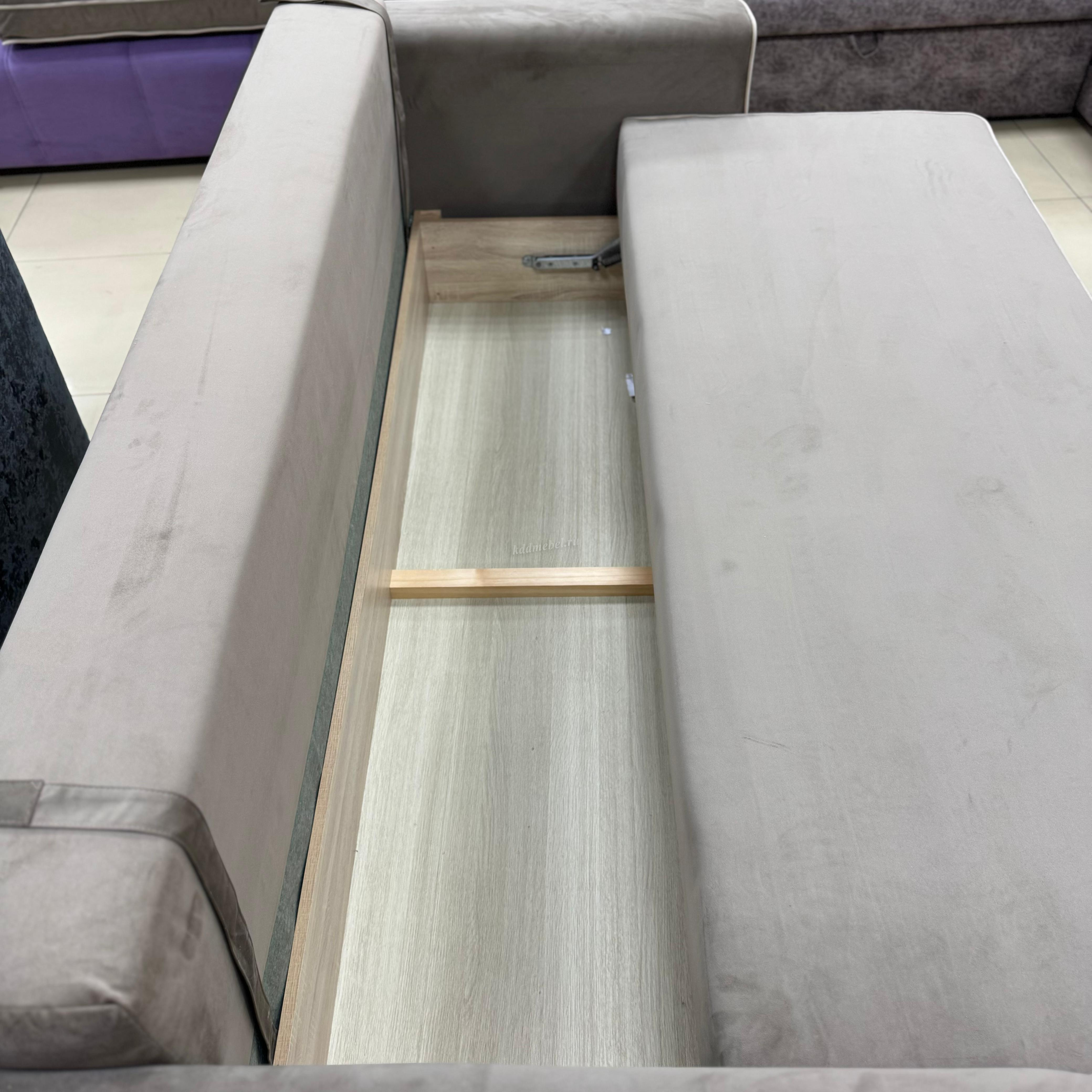 Вместительная емкость для хранения постельных принадлежностей с ламинированным основанием. Сиденье и спинка выполнены на основе независимого пружинного. Декоративные накладки на подлокотниках, облицованные пленкой ПВХ. Наполнитель: высокоэластичный ППУ, НПБ, синтепон.