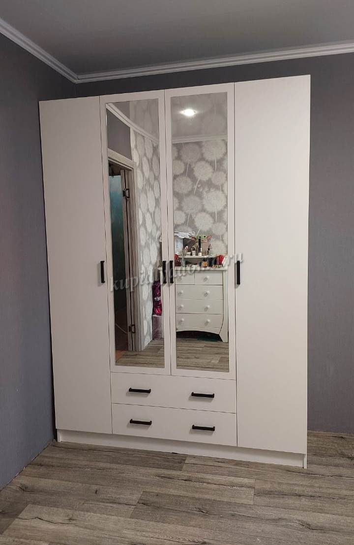 • Шкаф четырехдверный с зеркалом Беатрис с полками (Палермо/Латте/Велюр)