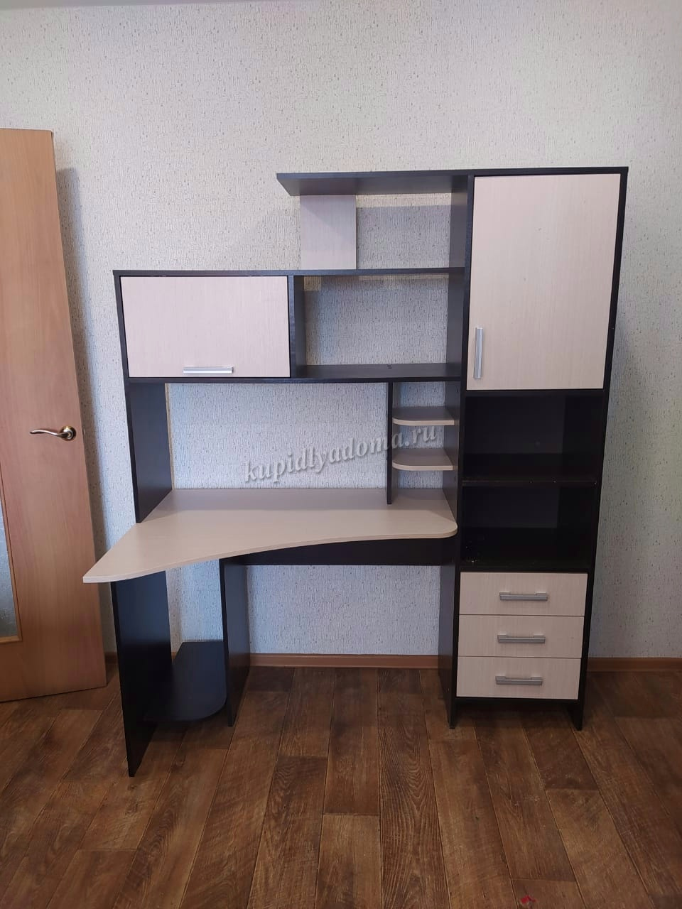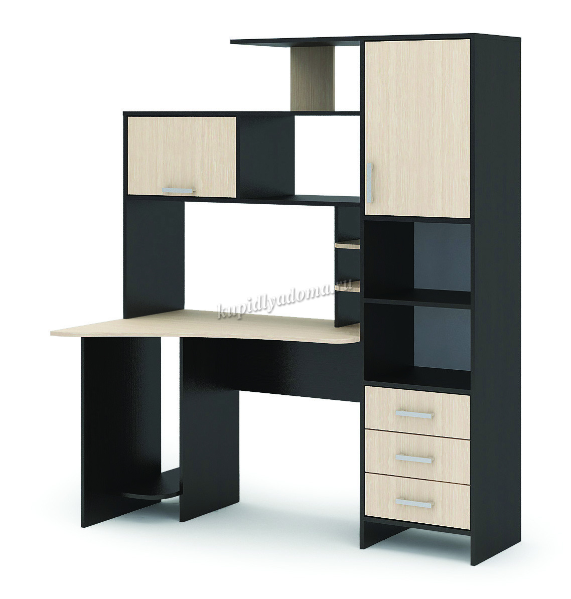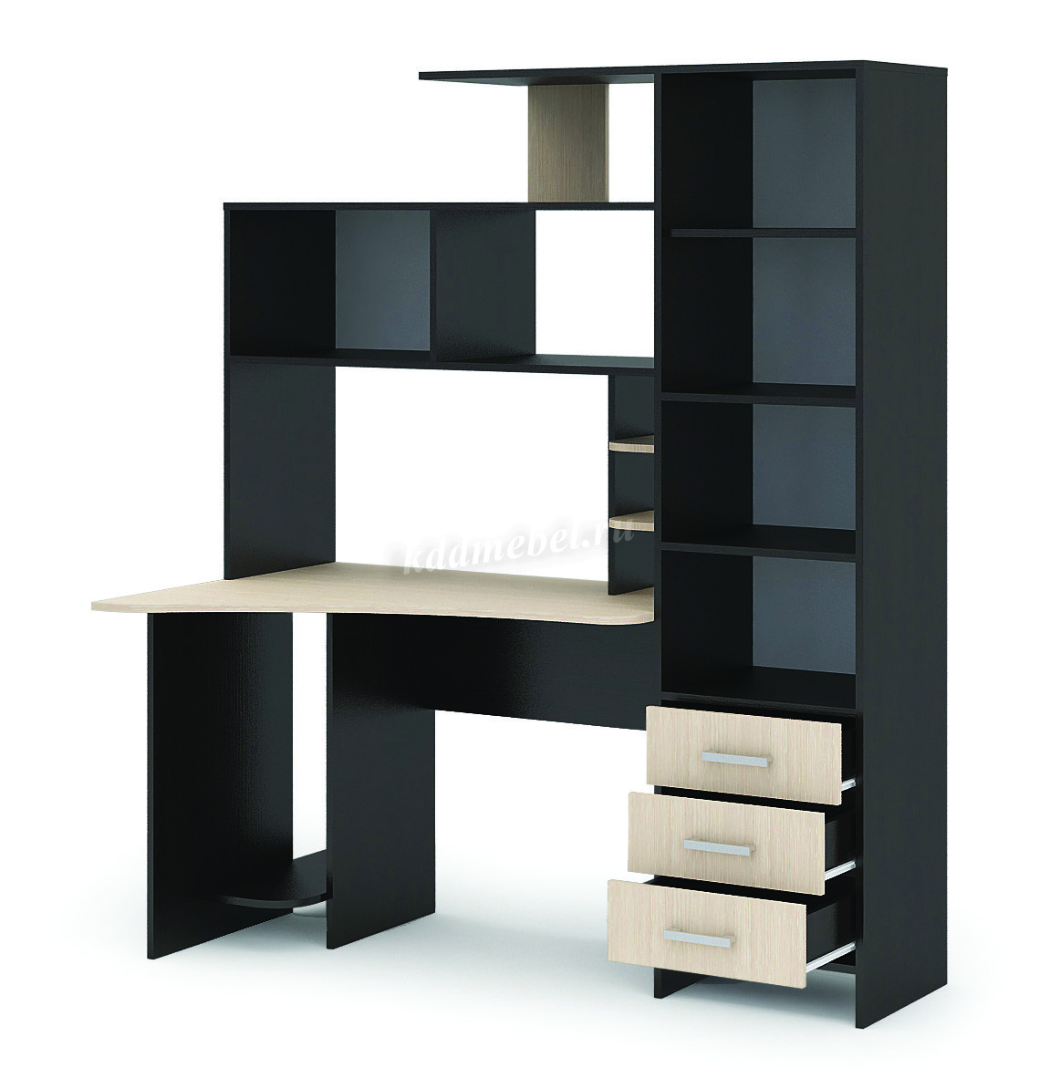 Этот компьютерный стол выглядит максимально эффектно. Конструкция не только эстетична, но и многофункциональна. Компьютерный стол станет ценным помощником в организации комфортабельного рабочего места дома или в офисе. Изделие выполнено в лаконичном стиле, за счет чего без труда будет гармонировать практически с любым дизайном интерьера. Система хранения модели состоит из открытых, закрытых полочек и трех вместительных ящиков. Такая комплектация является гарантией бережного и удобного хранения множества вещей, включая всю необходимую технику, а все нужные бумаги, книги и канцелярские принадлежности всегда будут под рукой.