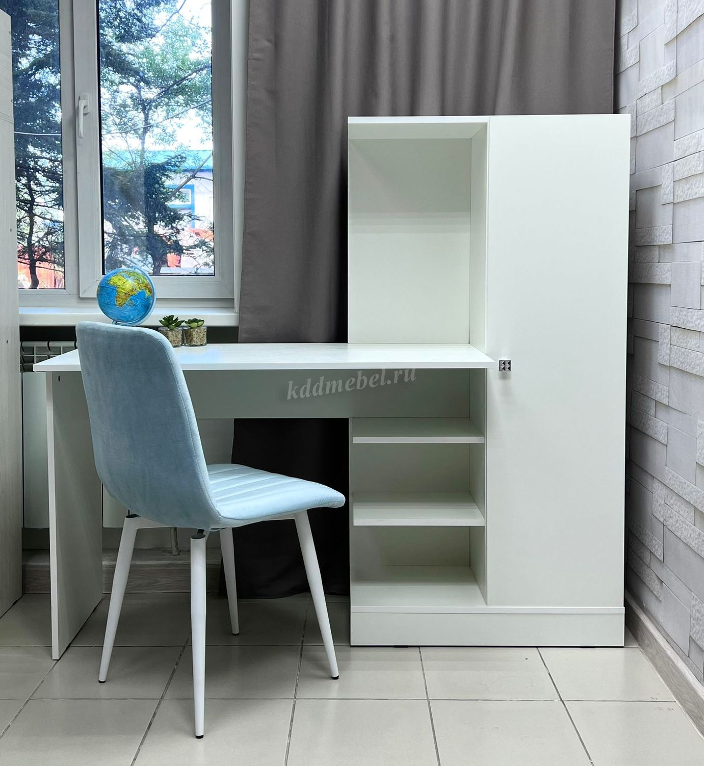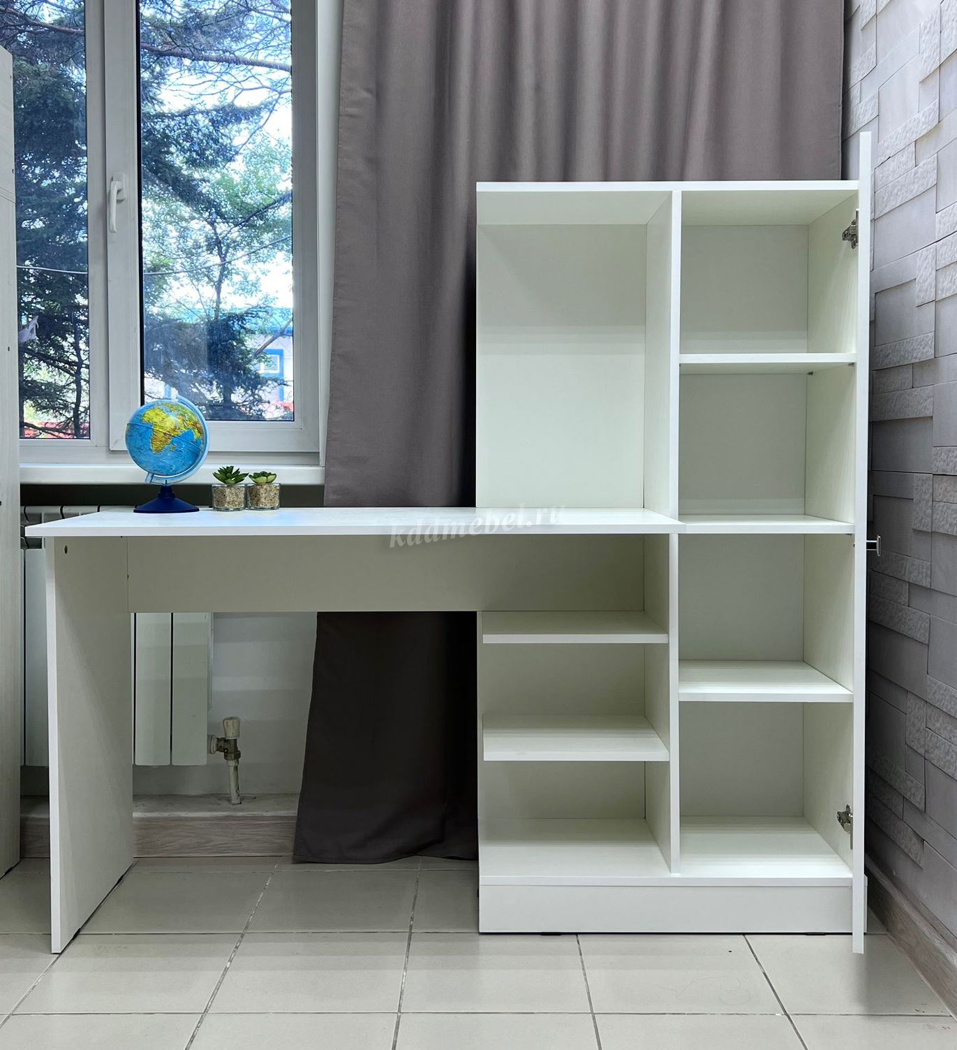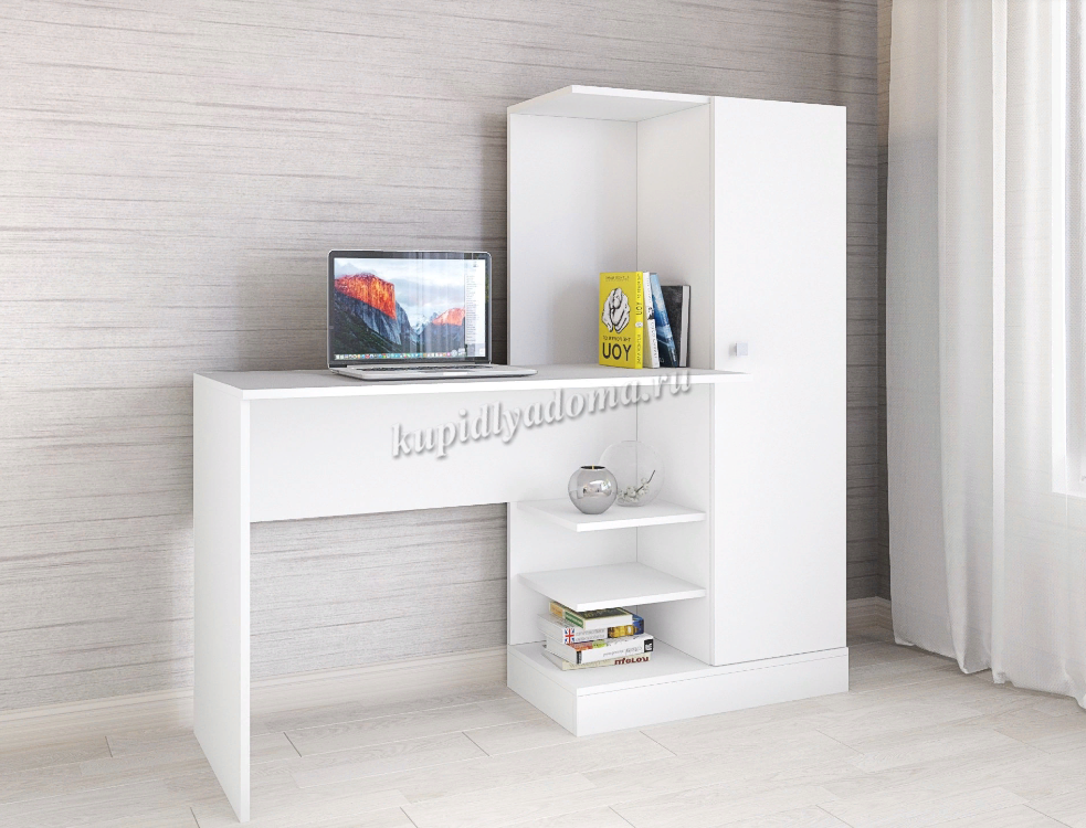 Компьютерный стол Квартет-6 отлично подойдет для комнаты школьника или рабочего кабинета. Стол оснащён шкафчиком и двумя полками под столешницей. Современный дизайн гармонично впишется в любой интерьер.