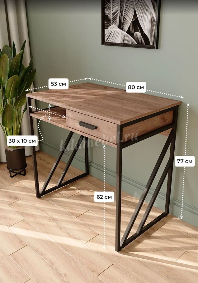 Описание Стол письменный Лорена (Дуб крафт табачный/Черный)