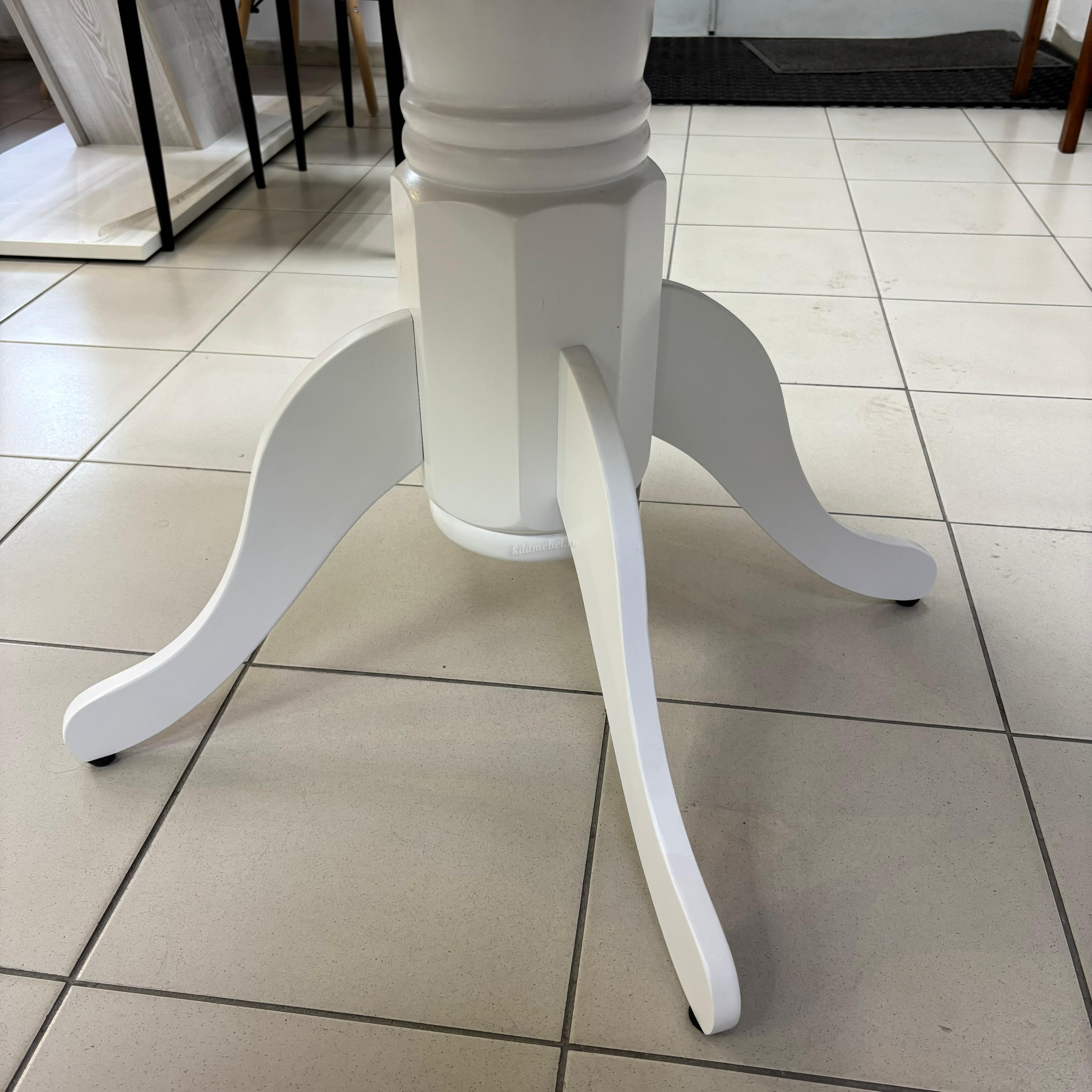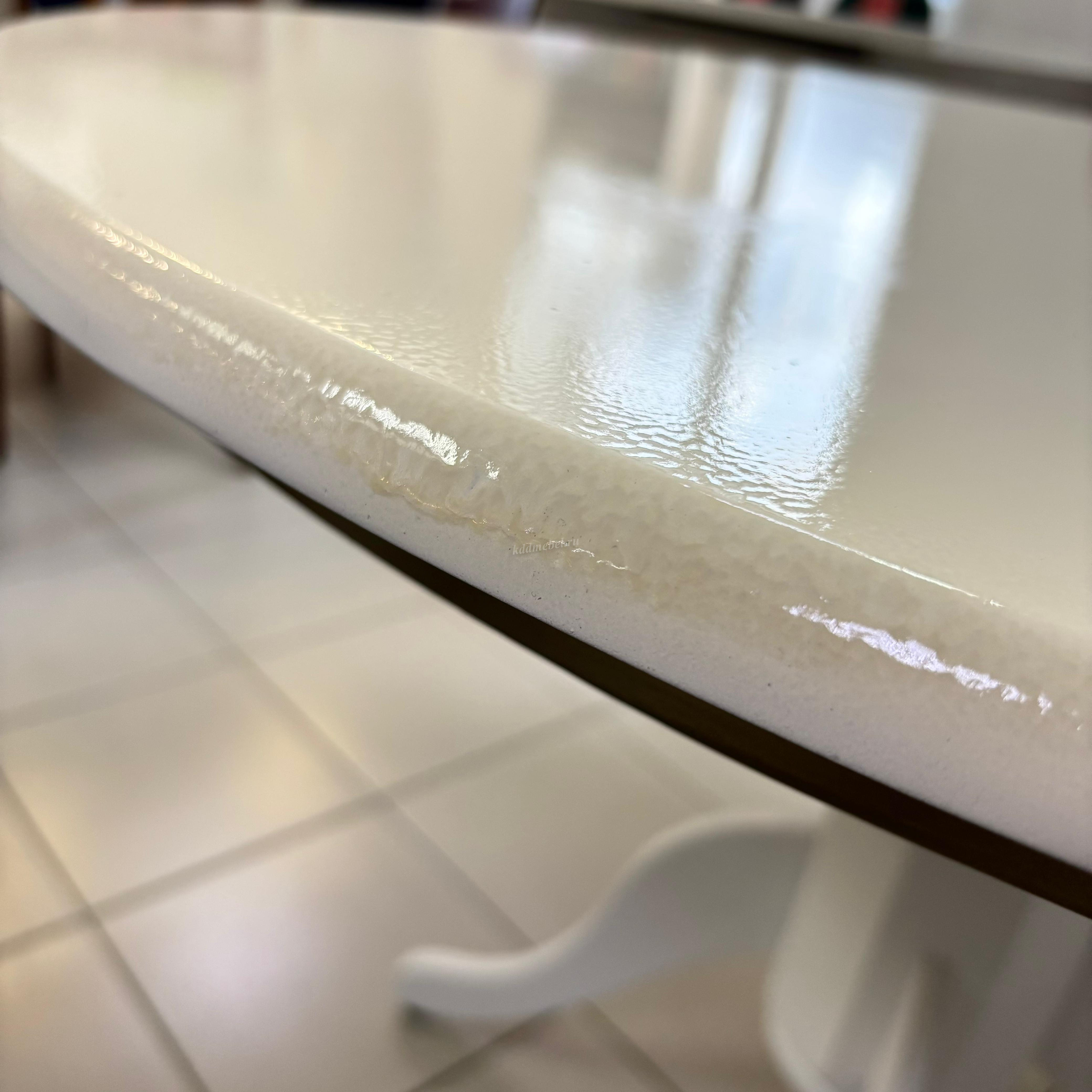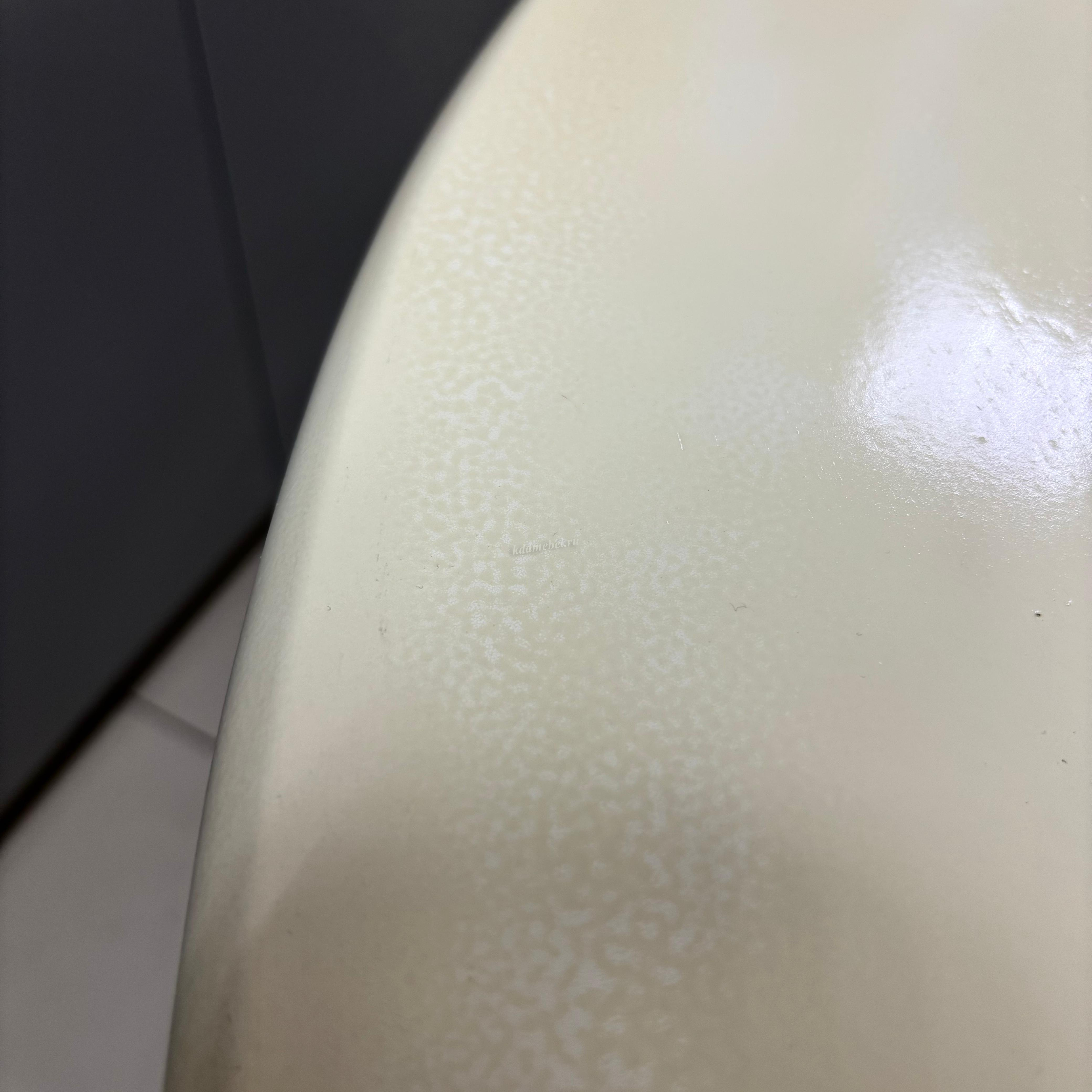 Ножка стола белая, столешница цвета слоновой кости. Имеются небольшие подтеки. Смотреть фото.